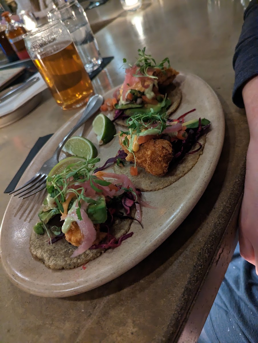 The atmosphere was perfect, had a younger crowd, but not too loud. Pretty authentic food. The Barbacoa was amazing, with with a deep rich sauce and perfect portions. My wife had the pork chop, again perfectly seasoned and really good. I did the Mezcal tasting and it was interesting, I am glad I did it. Learned about something new.